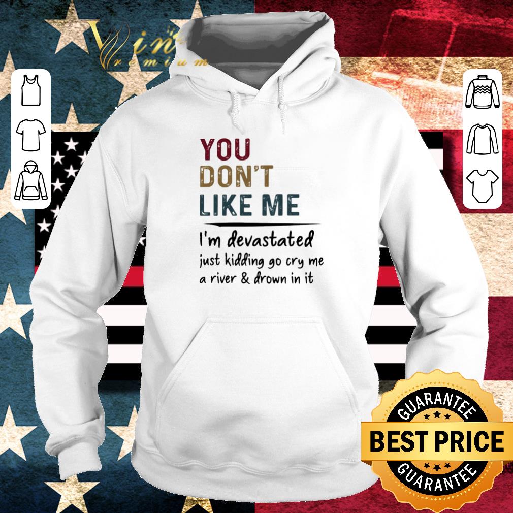Funny You don’t like me I’m devastated just kidding go cry me a river shirt, Hoodie, Sweater, Longsleeve T-Shirt For Men and Women
