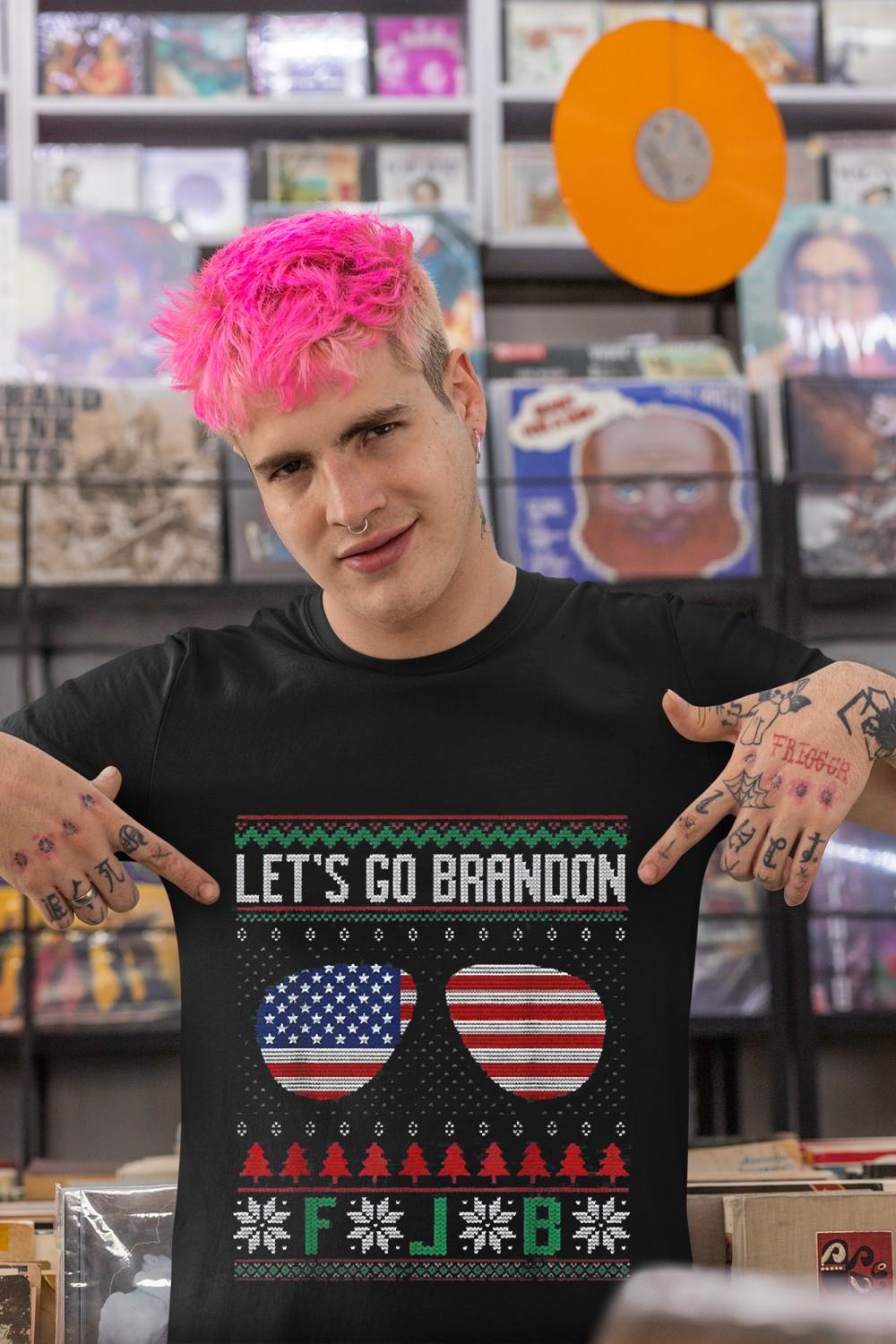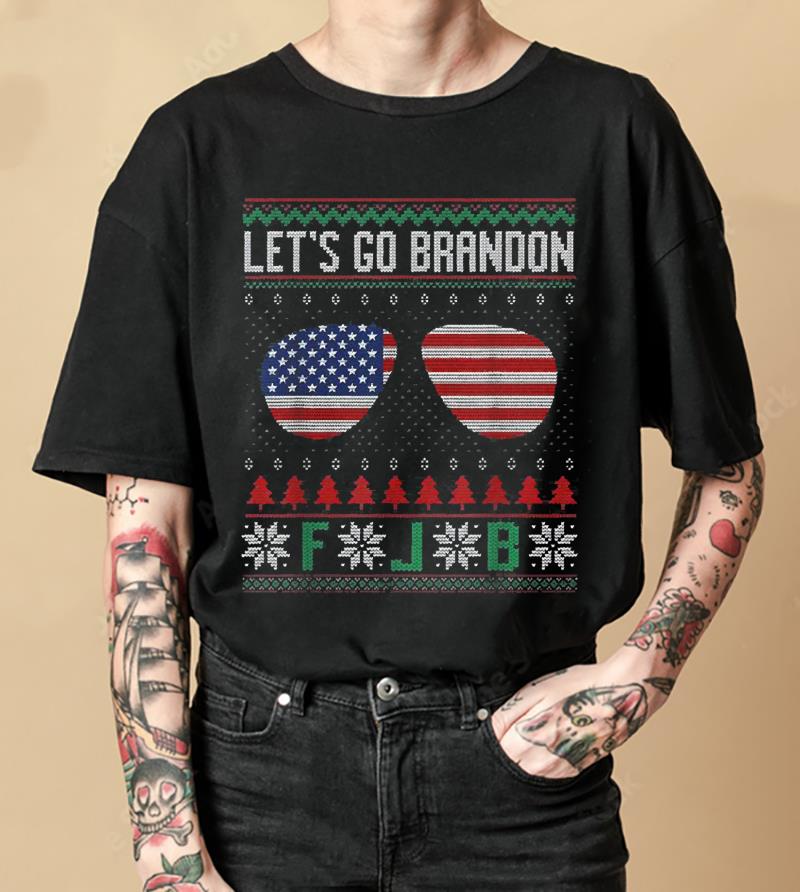 Glasses American Flag Let’s Go Brandon FJB Ugly Christmas Shirt, Hoodie, Sweater, Longsleeve, Tank Top, V-neck, Kid t-shirt, Women T-Shirt For Men and Women: